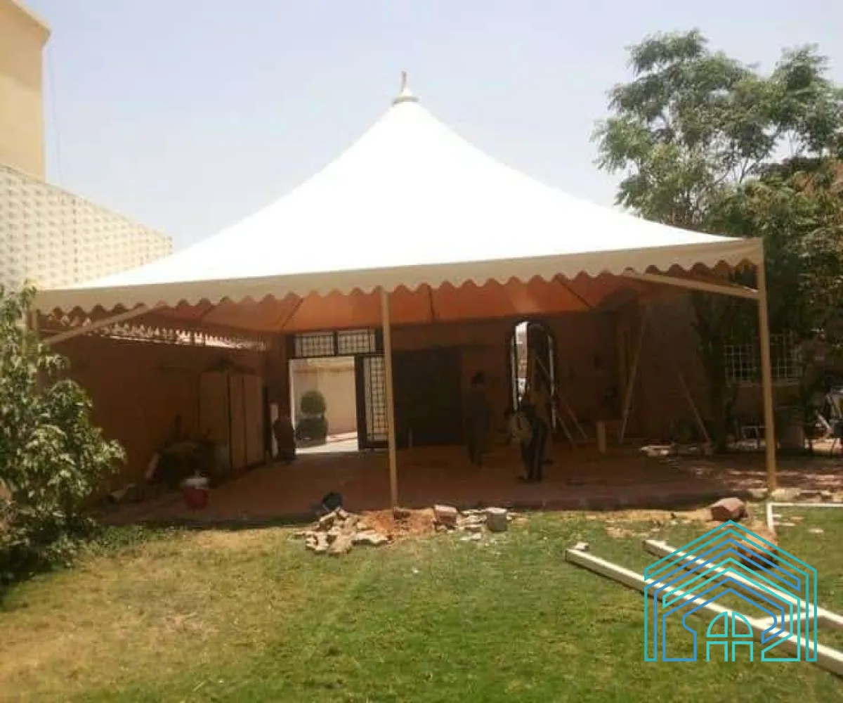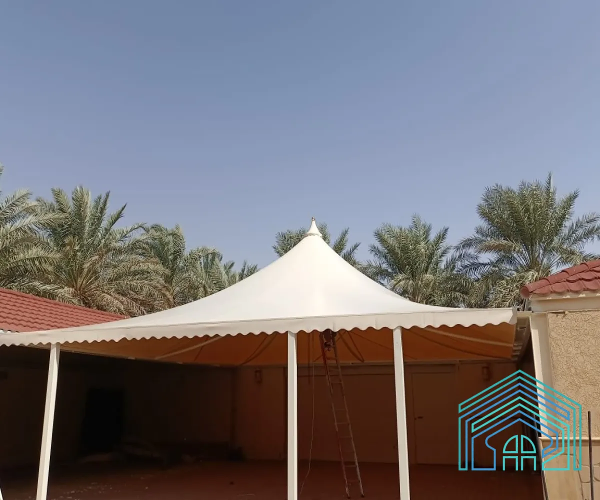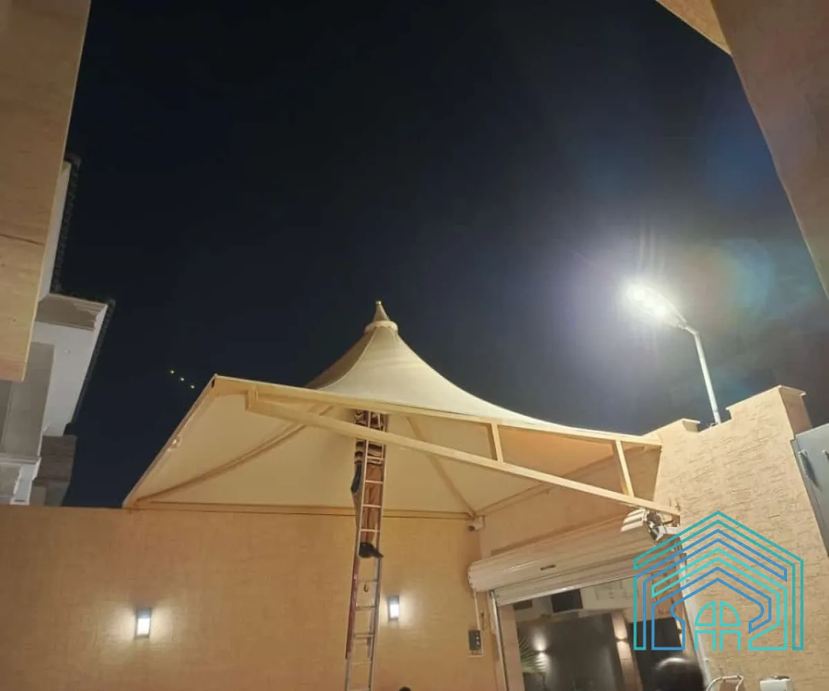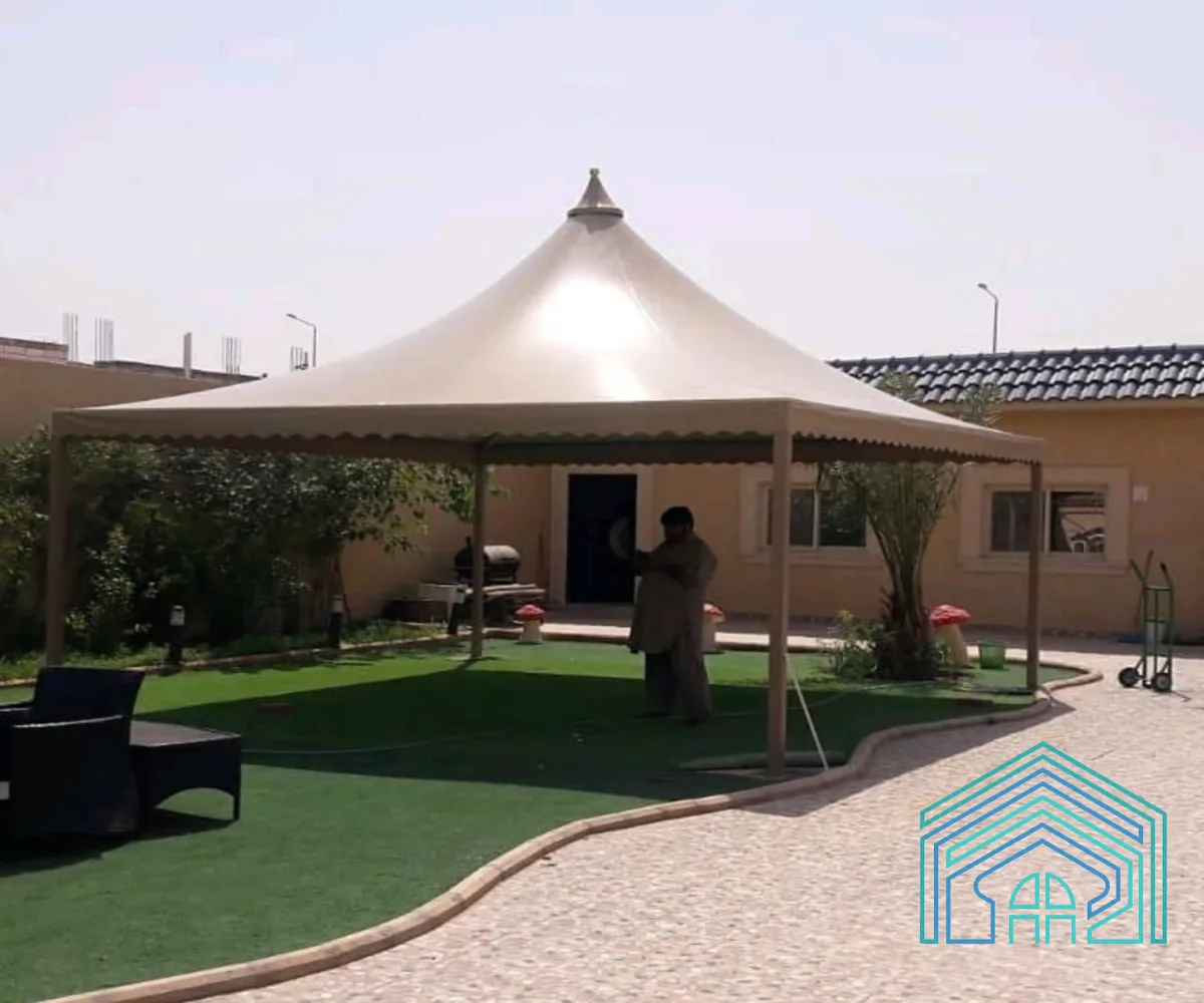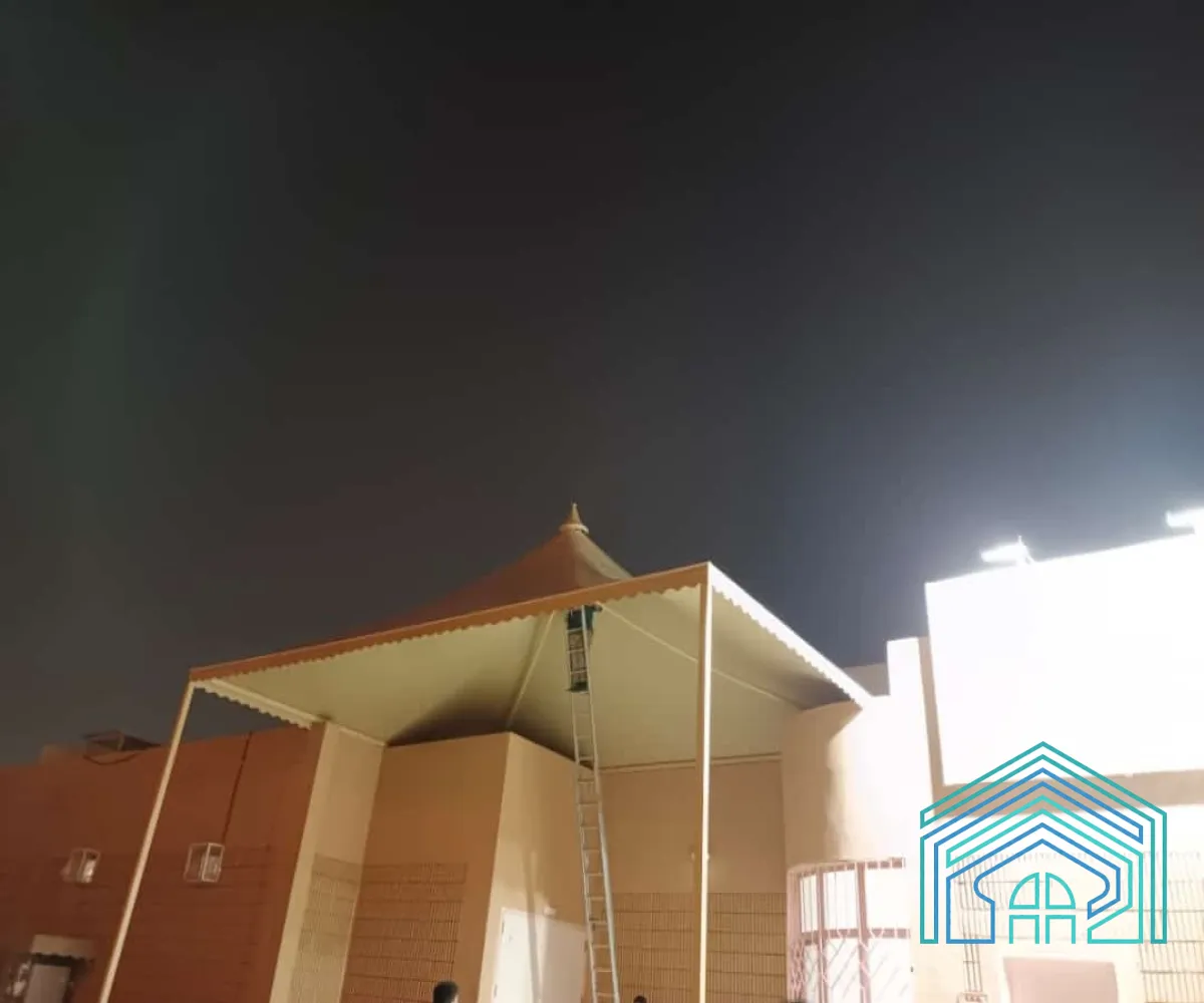 نوفّر تنفيذ مظلات هرمية بمقاسات وألوان متعددة حسب الطلب، مع تركيب احترافي يضمن المتانة والجمال.